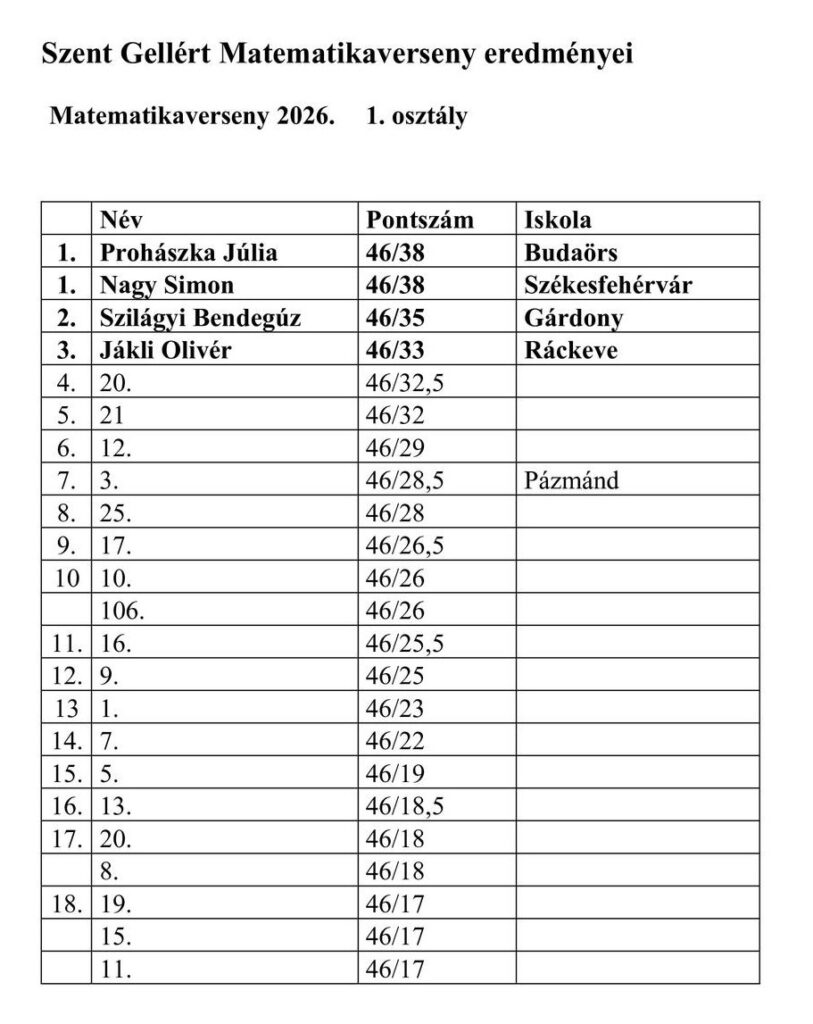 2026. április 19-31 között került megrendezésre hagyományos, iskolánk névadójának tiszteletére rendezett Szent Gellért hetünk. Ebben az évben a tanulmányi versenyeink 30 éves évfordulóját is ünnepeltük, aminek apropóján március 27-én gálaműsorral tettük emlékezetessé a jeles jubileumot. A házi versenyek során iskolánk tanulói több területen mérhették össze ügyességüket, gyorsaságukat, tudásukat: