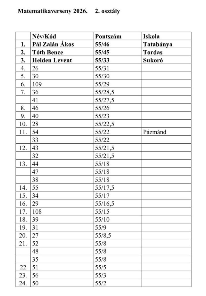• felső tagozatos matematikaverseny két korcsoportban (5-6. és 7-8. osztályosok)